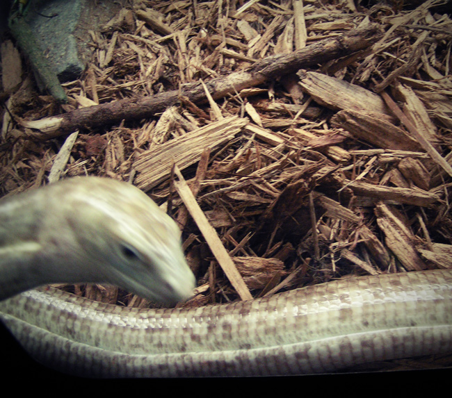 This legless lizard lives in the reptile house. Yes, it’s a legless lizard and not a snake.