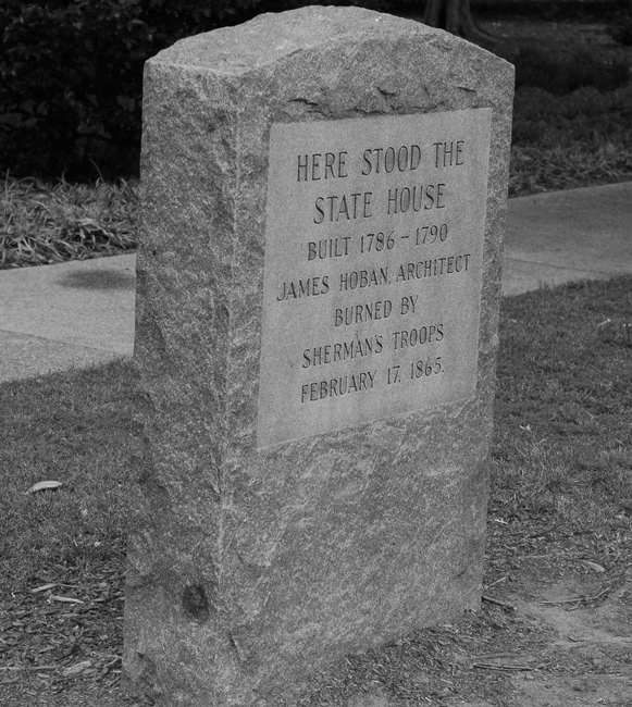 The story of the State House is as rich as the history of the state itself. The “new” State House’s original architect, P.H. Hammarskold, proved to be incompetent and was relieved of his duties in 1854. He was replaced by Major John R. Niernsee. Neirnsee had to completely dismantle the work started by Hammarskold before he could begin his own structure. Construction slowed during the War Between The States Things took a bad turn for everyone (except the Yankees) on February 17, 1865 when Sherman’s troops captured the city and began campaign of destruction.