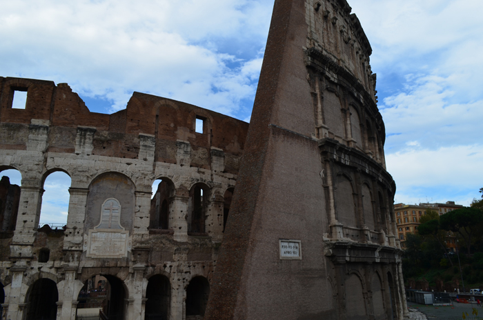This view of the Arch of Constantine is visible from the upper level of the Colosseum near the gift shop. After winning a key battle against Maxentius and attributing his success to a vision of Christ, Constantine converted to Christianity and declared that the religion was to be tolerated in the empire. This allowed for the end of persecution and the start of Christendom.