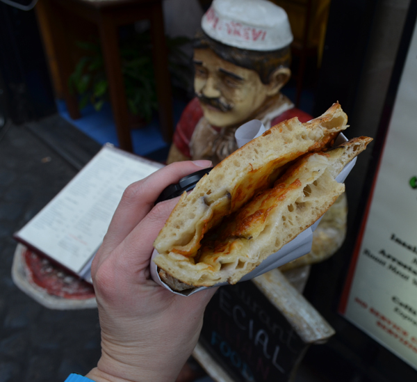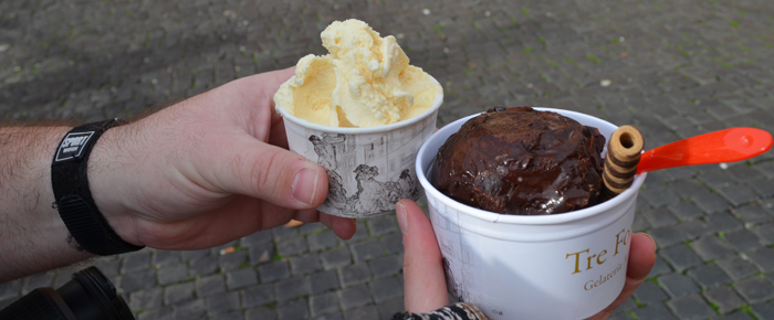 M chose a vanilla gelato while I chowed down on the tartufo. This treat features a maraschino cherry and what tasted like a bit of rum surrounded by chocolate ice cream that is then coated in a hard fudge shell. It’s rich and really unlike anything I’ve tasted before.