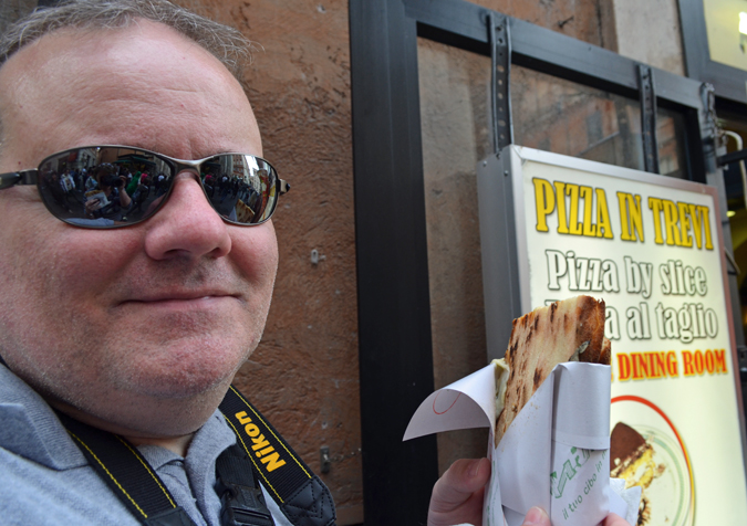 After seeing the fountain, we followed our noses to Pizza In Trevi, a pizza joint around the corner. These slices were fresh, delicious and a good value. I had thin strips of eggplant on my pie. Oh so yummy!
